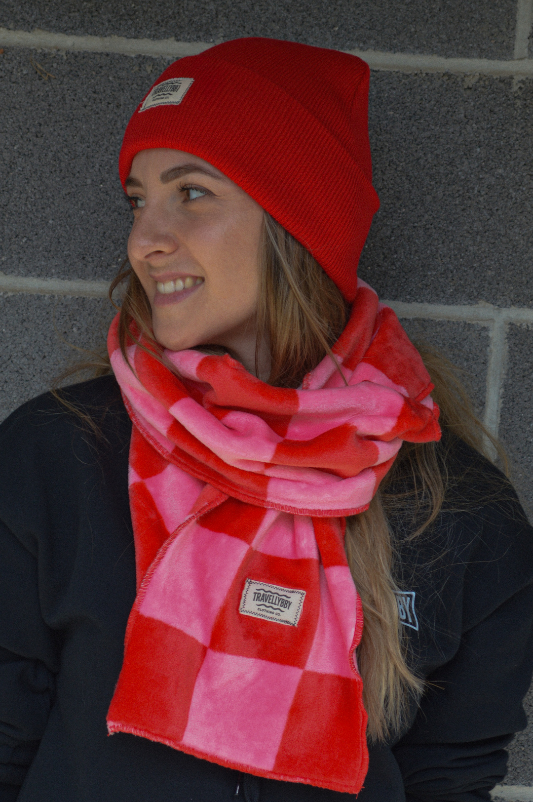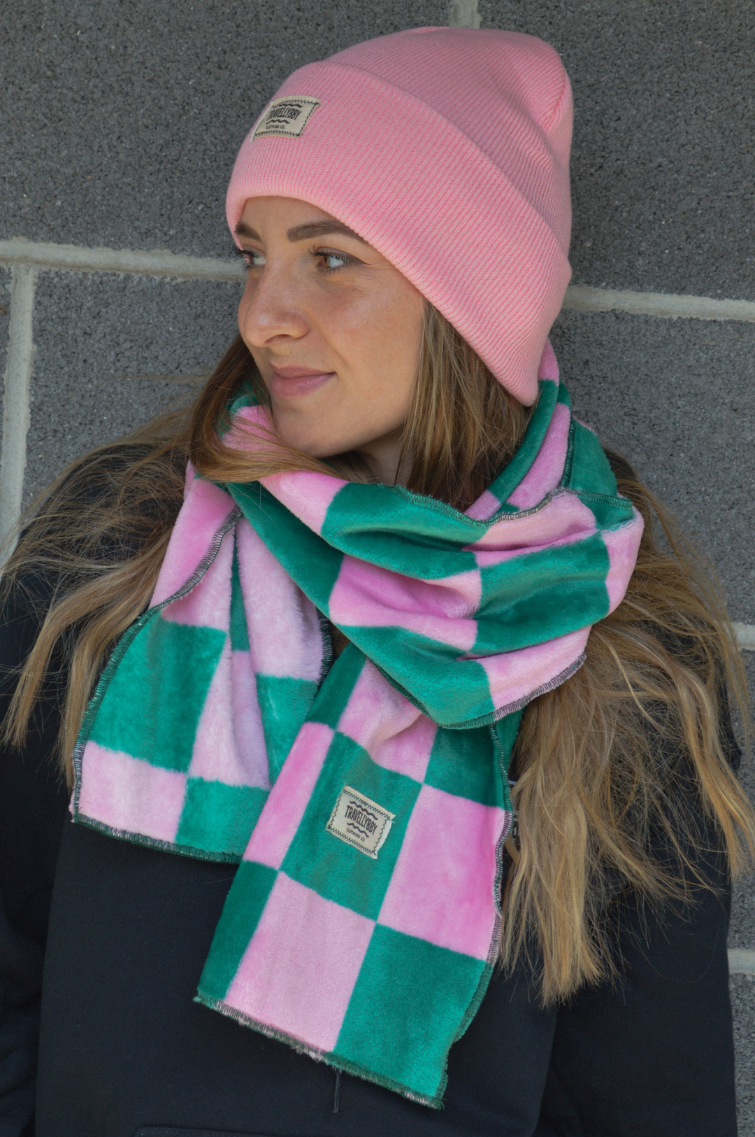 Enroulez-vous dans la douceur et le style! L’écharpe Damier vous accompagne avec chaleur et caractère à chaque sortie!