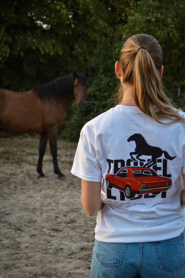 - Design : Flocage cœur et dos représentant un cheval et une muscle car