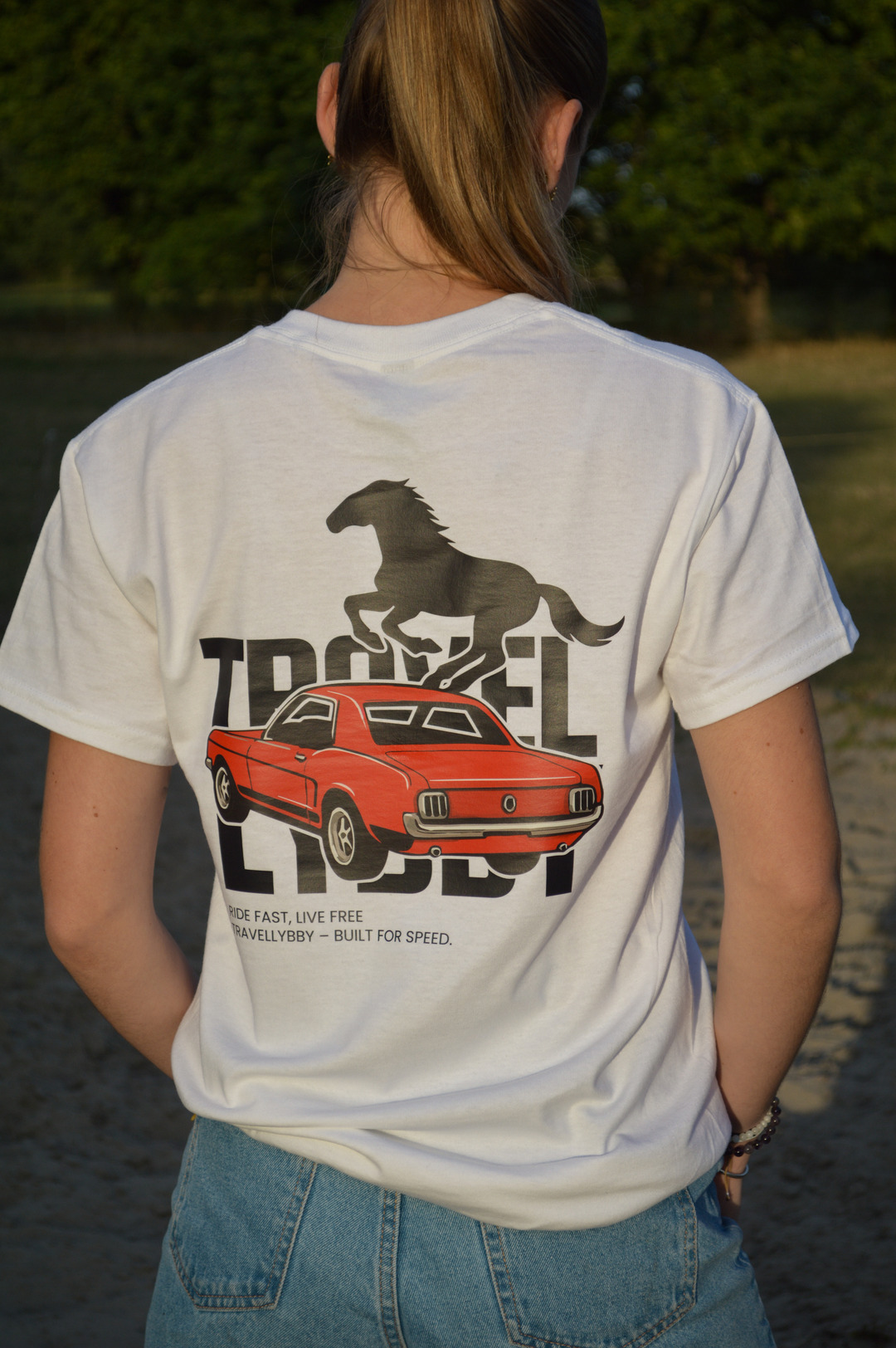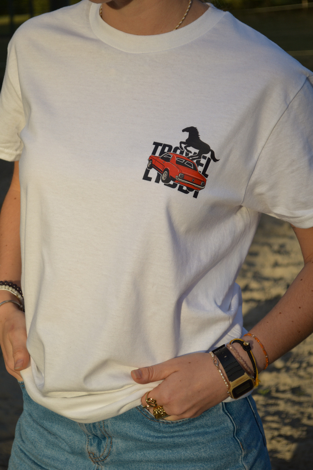 - Design : Flocage cœur et dos représentant un cheval et une muscle car